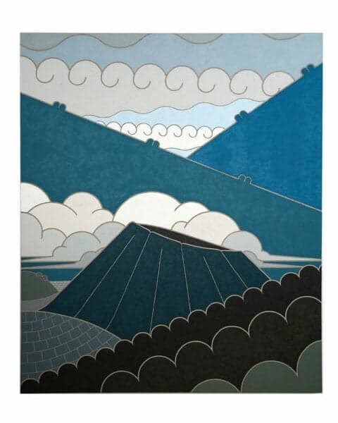 Sus pinturas dialogan con la tradición del paisaje en México desde una dimensión atmosférica. En ellas, el color actúa como un fenómeno relacional: aplicado directamente sobre el lienzo sin mezclar, traza una geografía sensible que evoca la cualidad efímera de fumarolas, nubes, lluvia y viento. Influenciado por el lenguaje visual prehispánico, Rosano Gamboa diseña composiciones que enlazan la abstracción con formas de la naturaleza, estableciendo un equilibrio entre lo que aparece y lo que vibra debajo de la superficie.