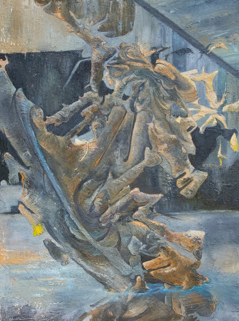 Sólidos ingrávidos es la segunda exposición de Jou Morales en la galería Campeche. Morales aborda el ejercicio imaginativo como una forma de resistencia, un recurso para preservar el devenir de los tiempos y seguir transformando el mundo. Las obras presentes en la exposición son una oda a la imaginación como herramienta simbólica: en ellas convergen tiempos y realidades distintas, pasados y futuros tecnológicos situados dentro de un mismo espacio, provocando contradicciones estéticas y materiales que dialogan entre sí. Sólidos ingrávidos es una reflexión sobre la manera en que nos contamos el mundo y sobre cómo la ficción continúa siendo la materia más viva y transformadora que tenemos a nuestro alcance.