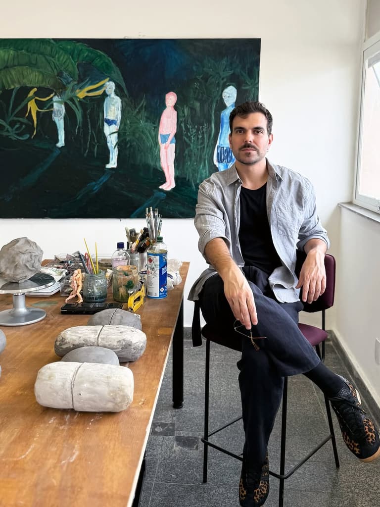 En Cielo Sudado, el artista brasileño Bruno Ferreira los deja fluir como una materia viva que respira entre lo sensual y lo político. La muestra —curada por Natalia Sosa Molina en Cuarto de Máquinas— es una especie de anatomía expandida del placer. Ferreira ensambla esculturas e instalaciones que parecen estar en medio de una transformación: órganos que se funden con frutas tropicales, metales que sudan, objetos que se tensan entre la ternura y la violencia. Cada pieza es un fragmento de un cuerpo colectivo, un gesto que revela lo erótico como fuerza crítica, no como adorno.