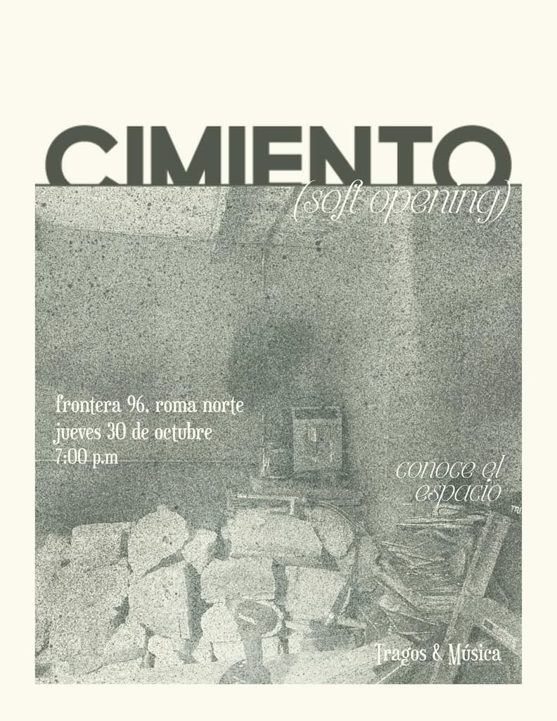 Conoce Cimiento, como espacio, este jueves a partir de las 7:00 de la tarde para este soft opening.