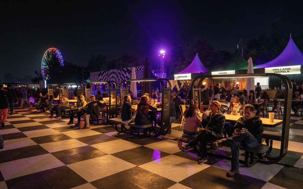 Y ahí está lo interesante: en cómo cada quien encuentra su propio ritmo. Hay quienes usan el espacio para descansar entre bandas, otros para reunirse con amigos antes de seguir bailando, otros para comer sin perder el pulso del escenario. Es un equilibrio extraño pero perfecto entre el ruido y el disfrute.