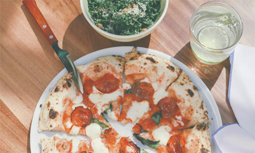 Las pizzas más ricas de la ciudad, pero también las ensaladas, albohóndigas y botanas más ricas. Si pides a domicilio, las bolsas traen mensajes escritos a mano por el equipo, para iluminar un poco los días difíciles. Haciendo tu pedido de manera directa puedes pedir cualquier botella de vino con un 15% de descuento.