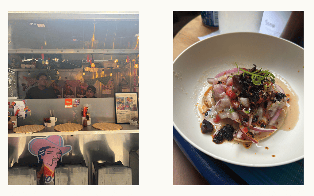 Aunque todo es delicioso, a decir verdad las protagonistas de este lugar son las tostadas. Increíbles creaciones que combinan salsas y texturas: para mí —amante de lo chino y lo norteño por igual—, la perichuan fue la estrella, hecha con leche de tigre, camote, salsa macha y pescado que se siente como fuegos artificiales en la boca, como caer en un sillón comodísimo luego de bailar toda la noche. Es de esas tostadas que no se olvidan fácilmente, que rondan en tu mente por horas y hasta días.