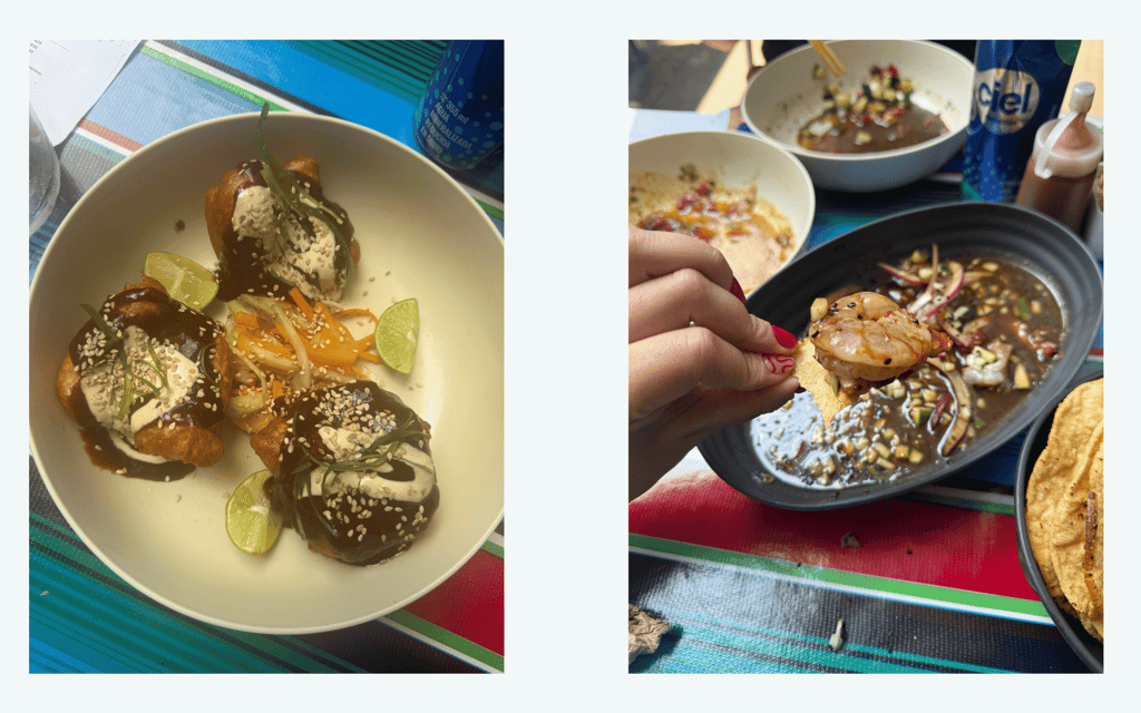 Pero aquí no solo es el recuerdo del mar, sino también un homenaje a la comida sinaloense. Recomendamos empezar la tarde con un suerito que calme el calor, nos pedimos unas gyozas de cerdo y un aguachile de camarón —que tenía un sabor fresquísimo. Además, unos pescaditos fritos que recuerdan al descanso como si estuviéramos bajo la sombra de una palapa, sintiendo la brisa del mar. Quizá el mayor atractivo de un lugar como este es que logra hacernos pensar que, a unos pasos de nuestra mesa, no hay una gran avenida por donde pasan coches todo el tiempo. Quienes atienden Chalino Chino son tan amigables que uno siente que ha llegado a la casa de un amigo, ofrecen recomendaciones, nos hacen la plática, no nos dejan hundirnos en los pensamientos ansiosos de quien, tal vez, llega a comer sin acompañante.