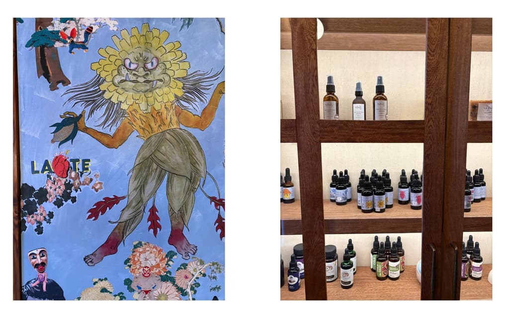 El espacio mismo es un refugio: madera cálida, cerámica, libros, flores y pequeños guardianes que conviven en un ambiente inspirado en la armonía japonesa. Y si quieres llevar un pedazo de esa filosofía a casa, su tienda viva tiene desde tinturas – que te recomiendo ampliamente – y fermentos hasta chocolates, velas y productos naturales de cuidado personal, cuidadosamente seleccionados para inspirar bienestar en lo cotidiano.