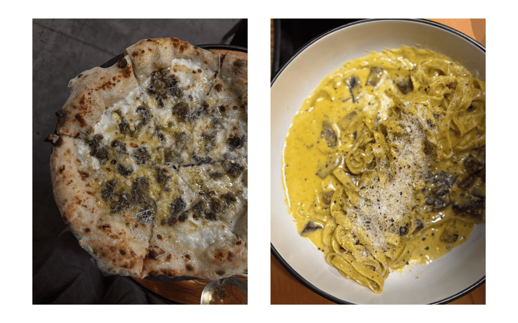 Mondello tiene un compromiso con la pizza napolitana que se percibe en cada detalle. La masa, fermentada lentamente, alcanza la textura perfecta: aireada en los bordes, suave en el centro y ligeramente ahumada por el horno. Cada pizza se arma con cuidado, dejando que los ingredientes se complementen sin imponerse. Tomate fresco, mozzarella cremosa, albahaca, compota de higo, pesto y parmesano, ingredientes frescos que se desprenden en aroma a la primera mordida; todo se equilibra como si cada una de las recetas hubiera sido ensayada durante años.