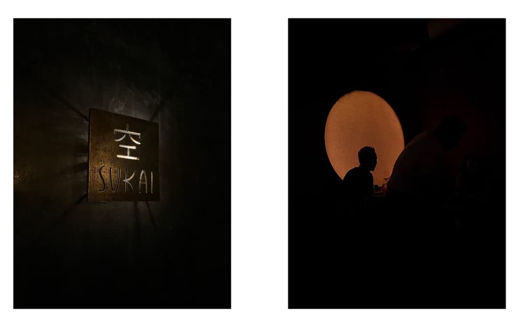 En Sukai hay varios espacios que cambian la experiencia, siempre para bien: en la barra uno puede sentarse a observar cómo se prepara cada platillo, el salón principal es perfecto para dates o una charla profunda entre amigos y en la terraza es inevitable escuchar a familias enteras disfrutar de un domingo soleado. En el interior, la madera hace que el lugar se sienta más cozy que otros. Además, la iluminación juega un rol central en Sukai: una lámpara circular con una tenue luz cálida capta la atención incluso de los que caminan por ahí. Se trata de un ambiente acogedor, cómodo, como si nos dejáramos envolver por una atmósfera que invita no sólo a la desconexión sino al asombro, a las risas y al cariño a la comida.