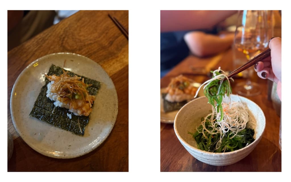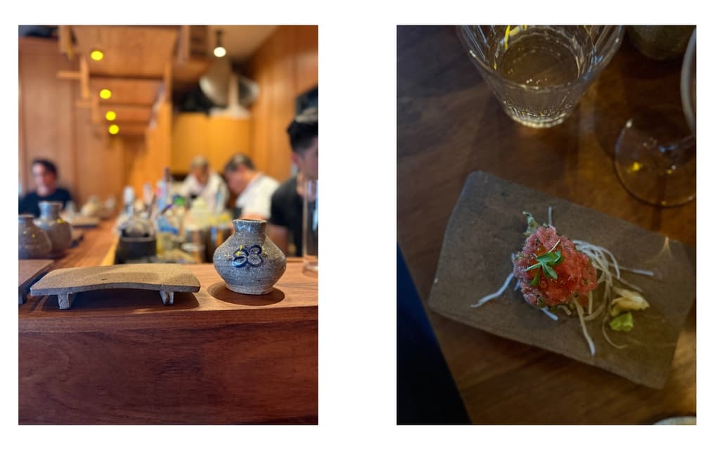 No podía irme sin probar uno de los tantos sakes que tiene su carta líquida; y es que se trata de un menú lleno de sorpresas: vino natural (que pedí al principio para abrir el apetito) y un whisky japonés que me cautivó tanto que tuve que comprar mi propia botella para casa. De postre (porque siempre hay espacio para algo dulce), un mochi de mazapán remató la experiencia haciéndola inolvidable.