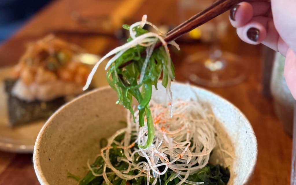 La idea del chef Klaus Albert Mayr —quien también es dueño de Anónimo en la Condesa— era combinar el estilo japonés contemporáneo con técnicas ancestrales que convierten la comida nipona en una tan especial como cuidada. Lo mejor del menú, sin duda, son los nigiris; sin embargo, sus rollos merecen una mención distinguida, casi de honor: el de leche de tigre es simplemente espectacular. Probé una sopa miso que me recordó a los abrazos que me daban mis amigas cuando ya no aguantaba las ganas de llorar: cariñosa, a temperatura ideal, con algas que acentúan los sabores de la isla. Las gyozas de verdura resaltan entre la multitud, y es que en una ciudad donde parece haber tantas propuestas hace falta que algo así, sencillo y delicioso, te baje los pies a la tierra. También hay brochetas de vegetales como elotes baby y coles de Brusela a la parrilla que dan un cierto encanto a la mesa.